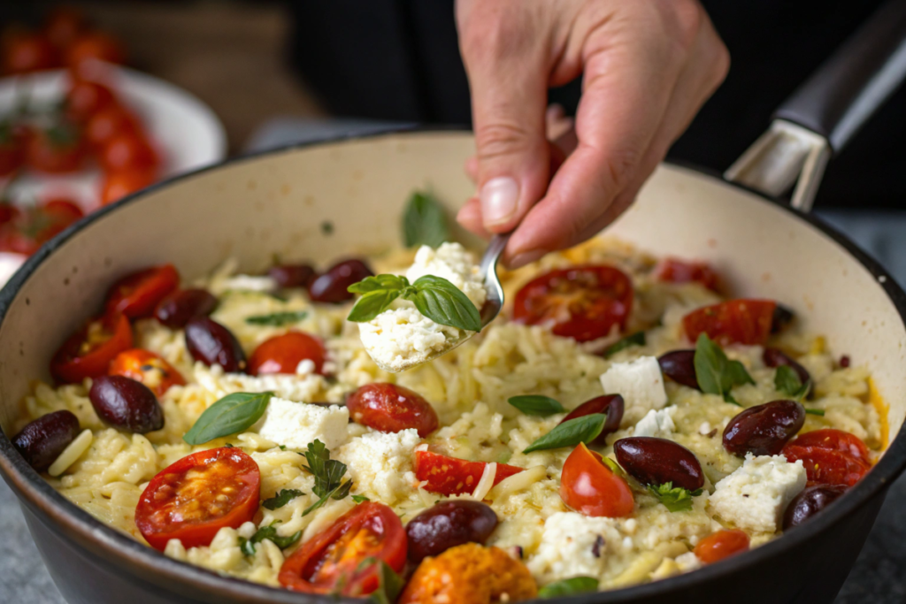 This recipe is inspired by traditional Mediterranean flavors, particularly Greek cuisine, which often features feta cheese, olives, and fresh herbs. The baked feta trend originally took off as a simple dish with cherry tomatoes, but incorporating orzo makes it a complete, hearty meal.